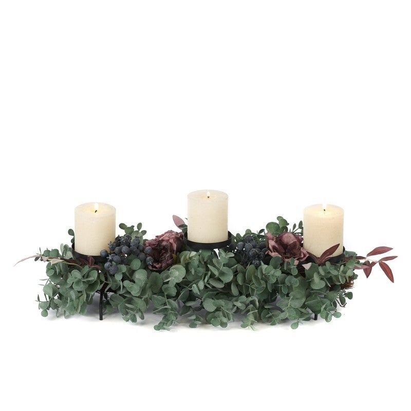 FLOWER-EUCALYPT.3 CANDLE HOLDER TT PNK-GRN 56CM