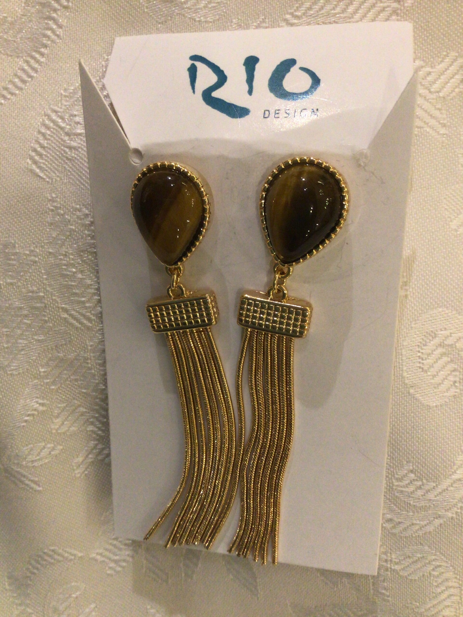 18-k goud-plated steker oorbellen met een tiger eye steen