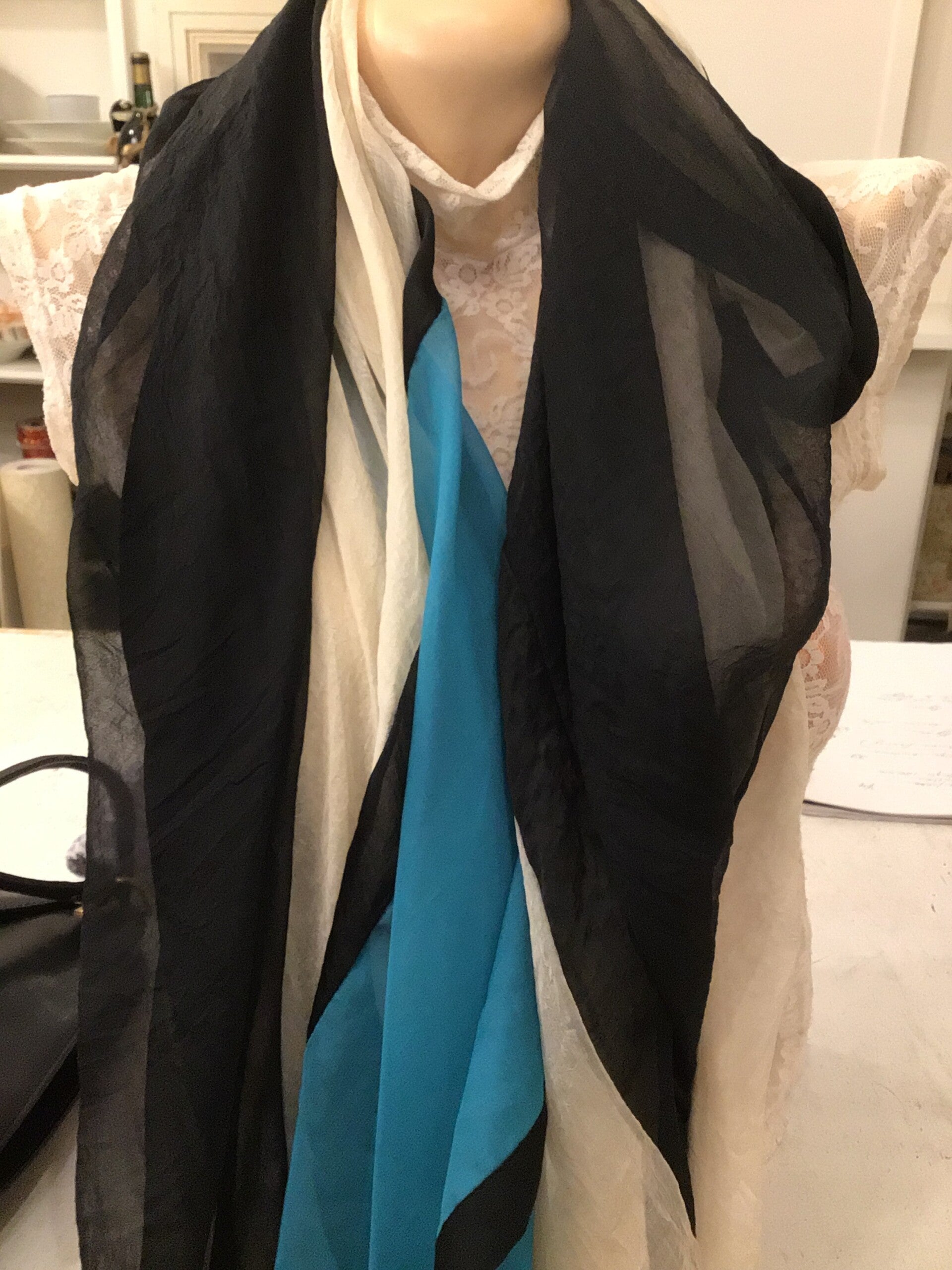 Shawl zijde groen, zwart & beige