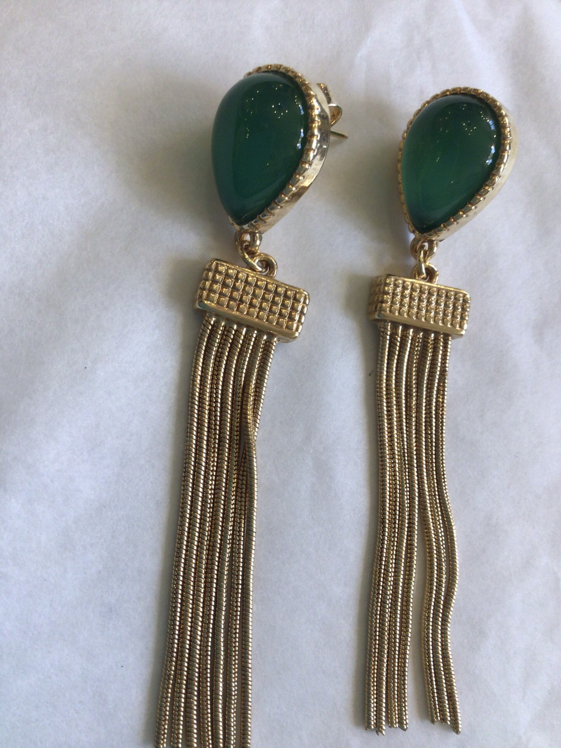 18-k goud-plated steker oorbellen met een agaath steen groen