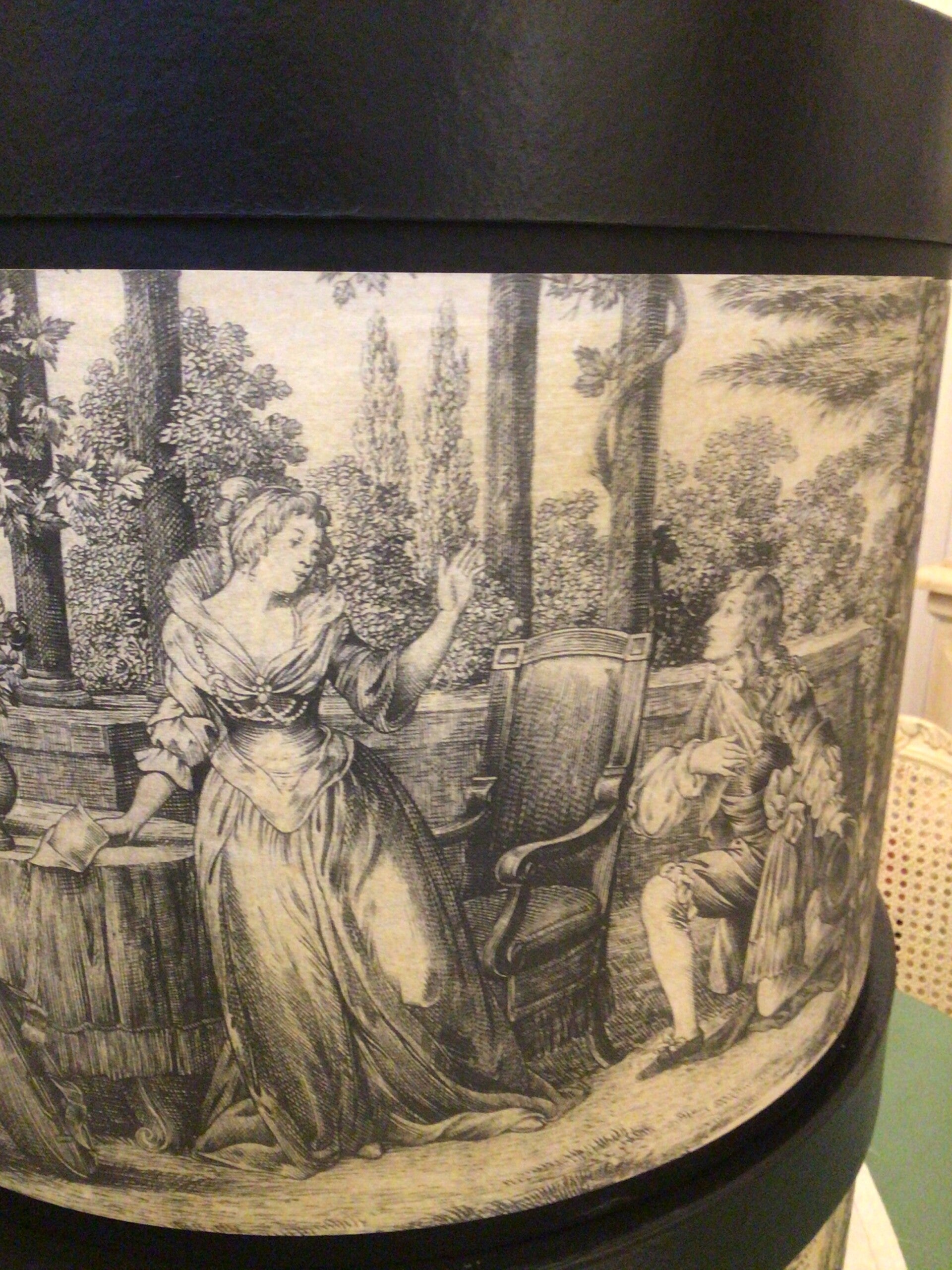 Voorstelling tafereel uit de renaissance, zwarte deksel.
