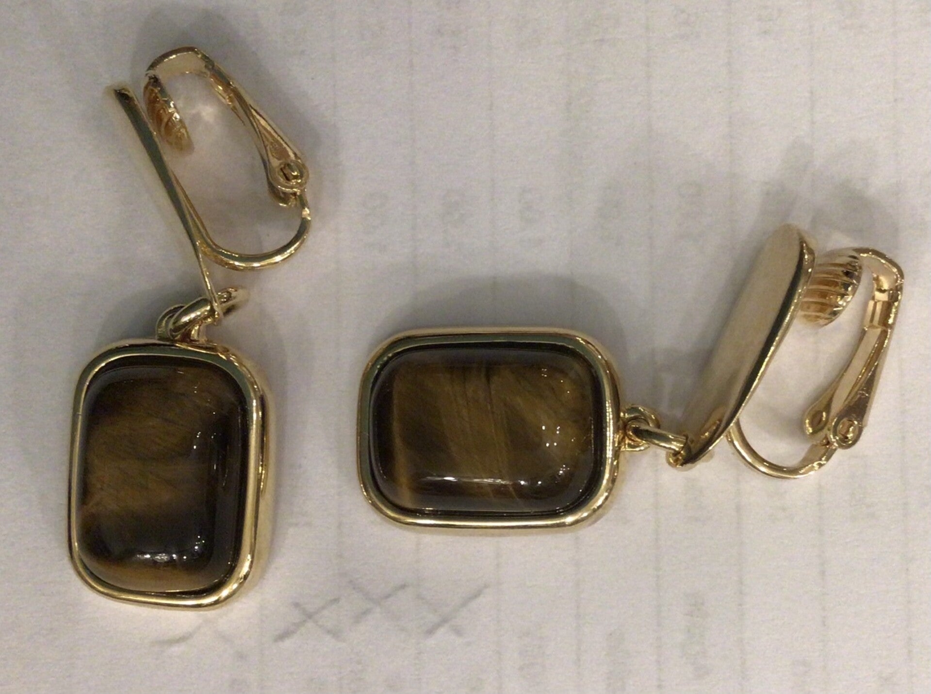 18k gold plated oorbellen, clips, steen tijger eye.Ook andere stenen in de collectie.