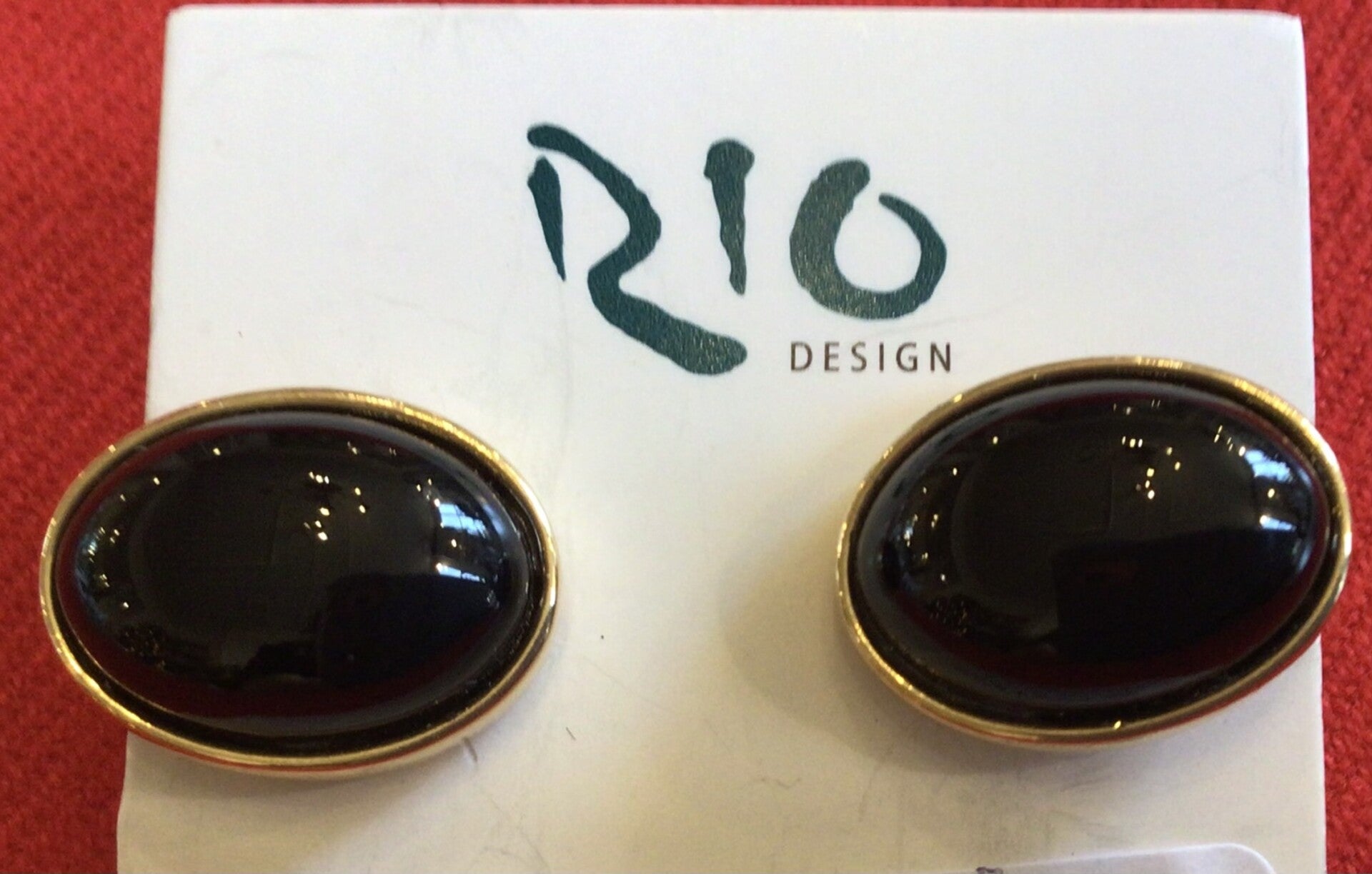 Clips oorbellen, 18k gold plated , zwarte agaat steen