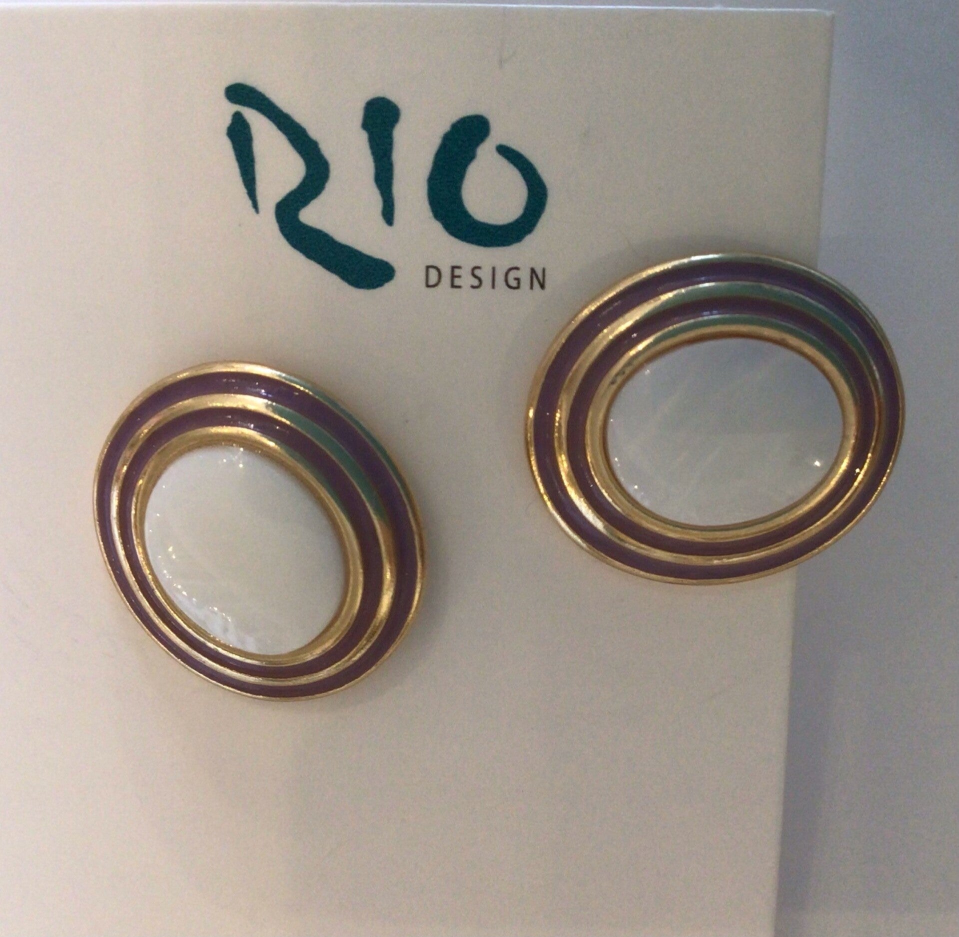 Rio Design, Oorbellen parel ovaal met paarse omlijsting